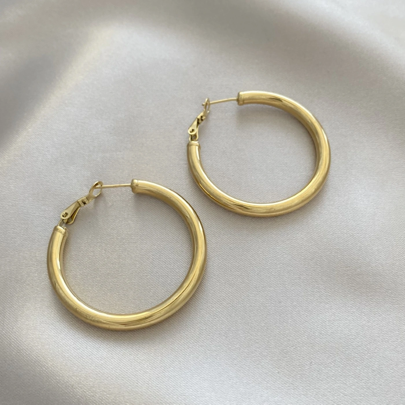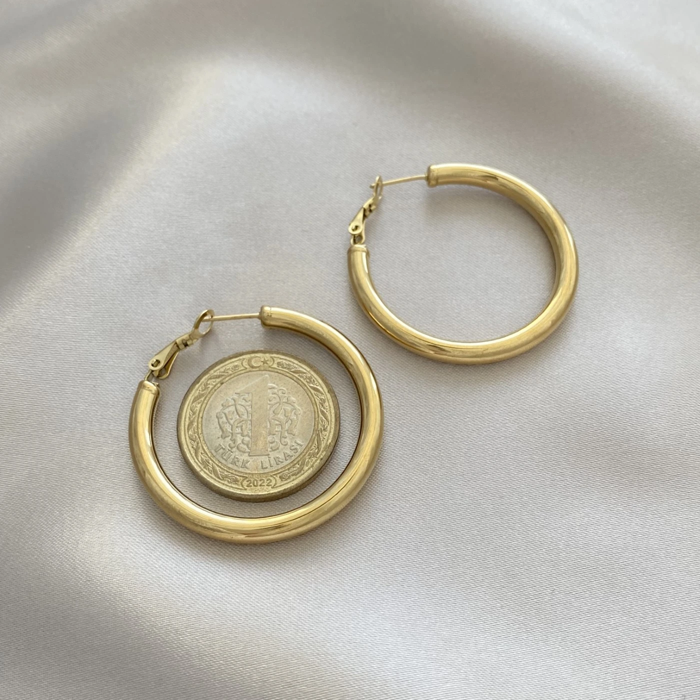 Boru Çelik Halka Küpe Gold ( Büyük )