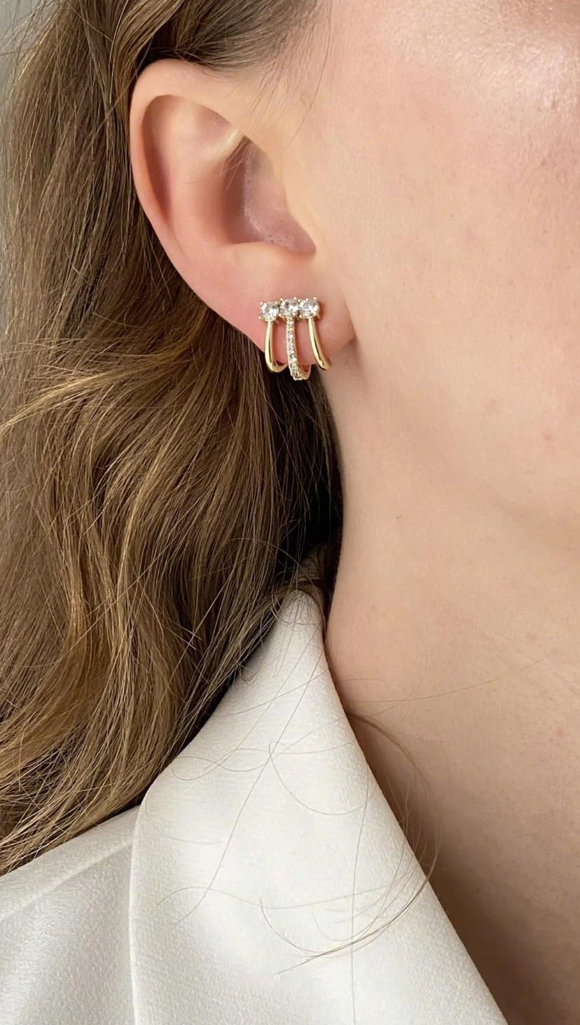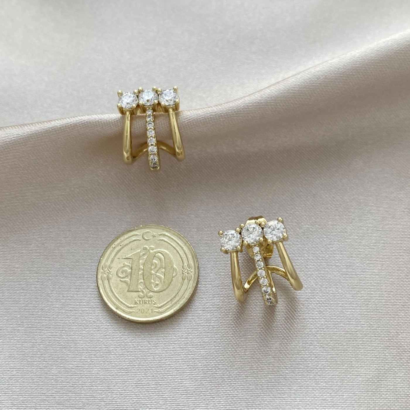 Daire Taşlı Üçlü Görünüm Küpe Xuping Gold