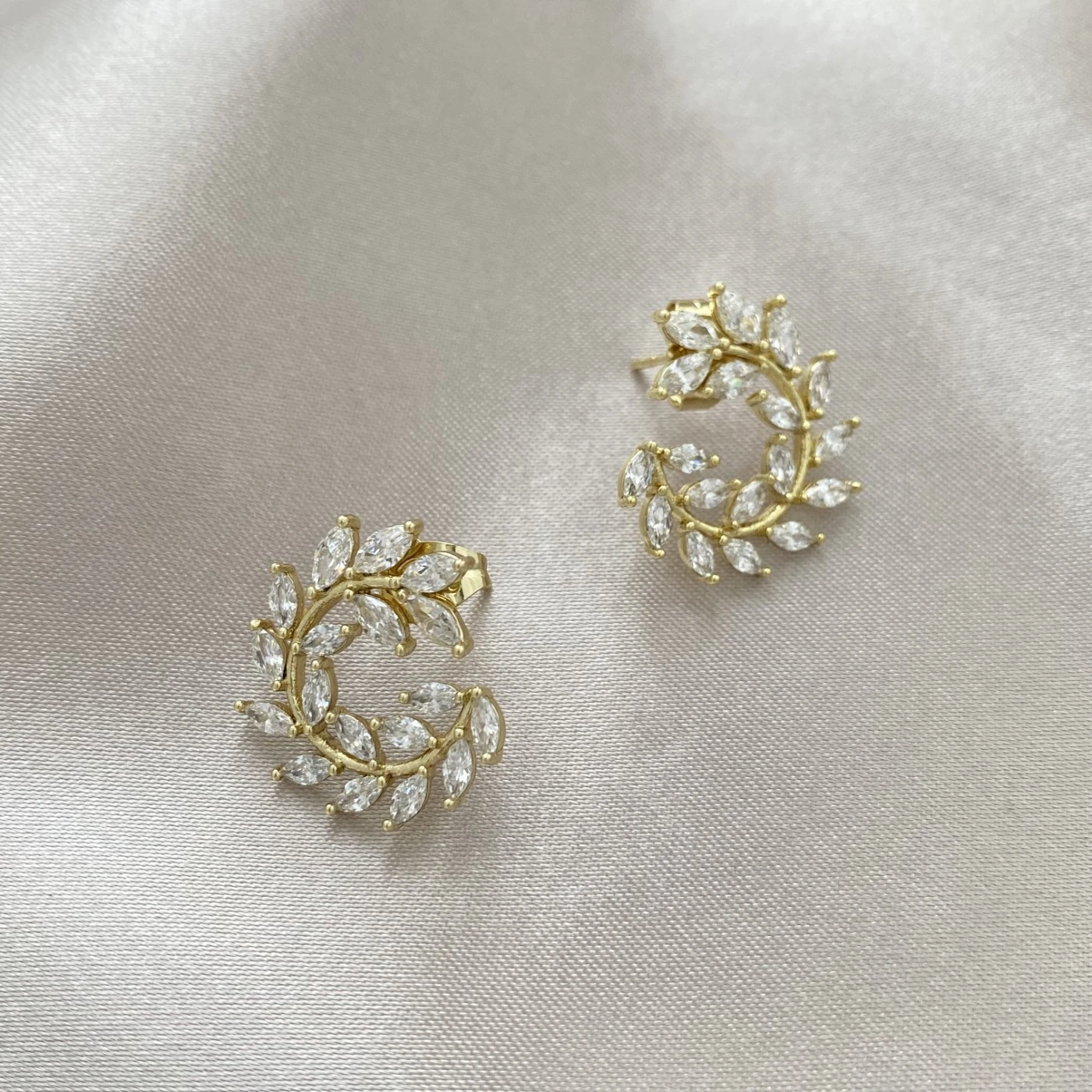 Kristal Taşlı Tasarım Yaprak Küpe Xuping Gold