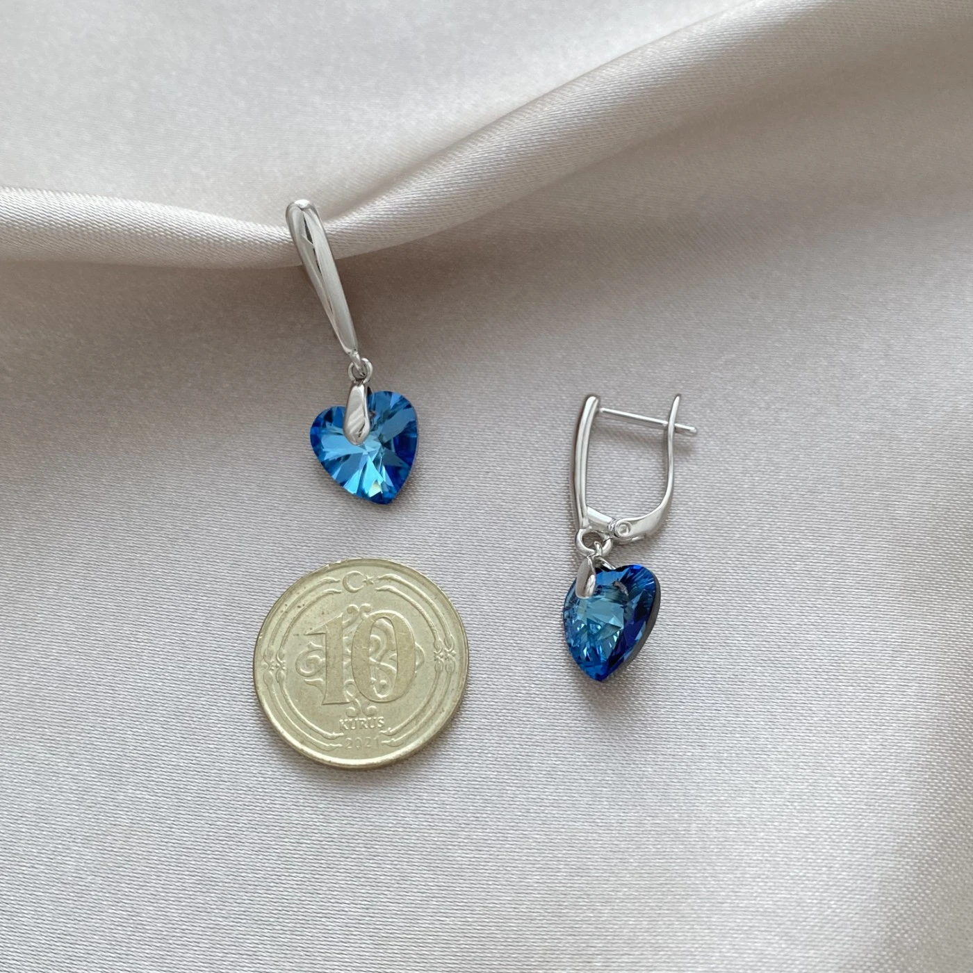 Mavi Swarovski Kalp Küpe Xuping Silver
