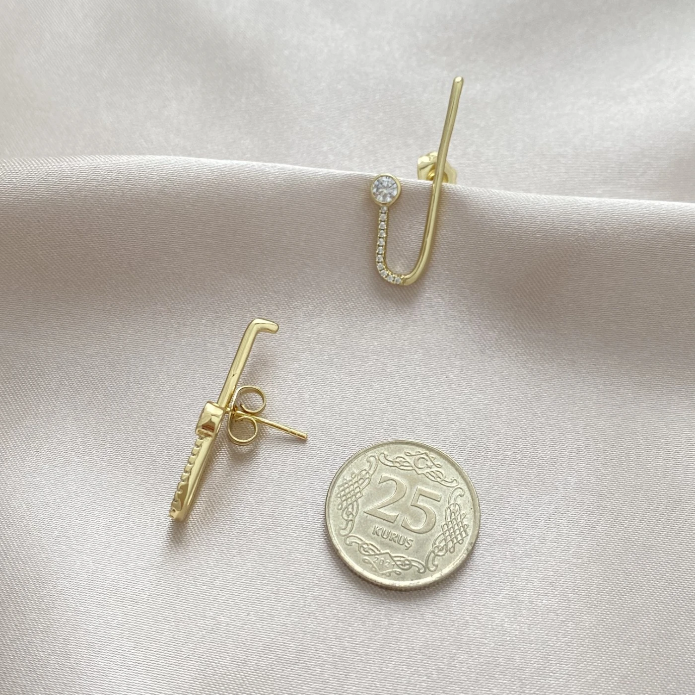 Nokta Taşlı Tasarım Küpe Xuping Gold