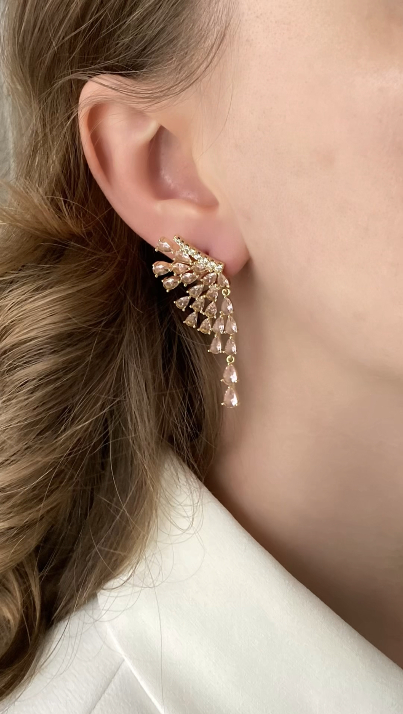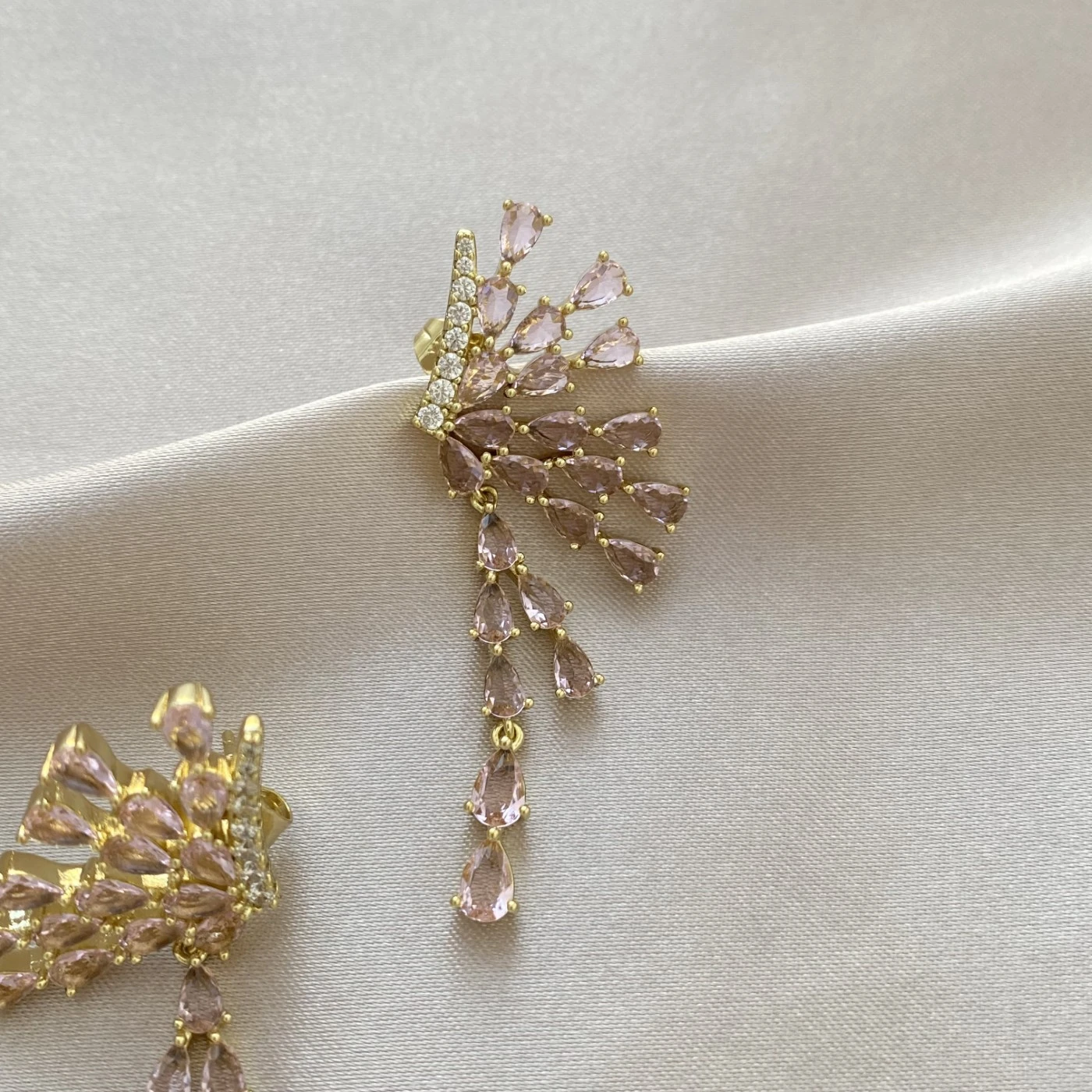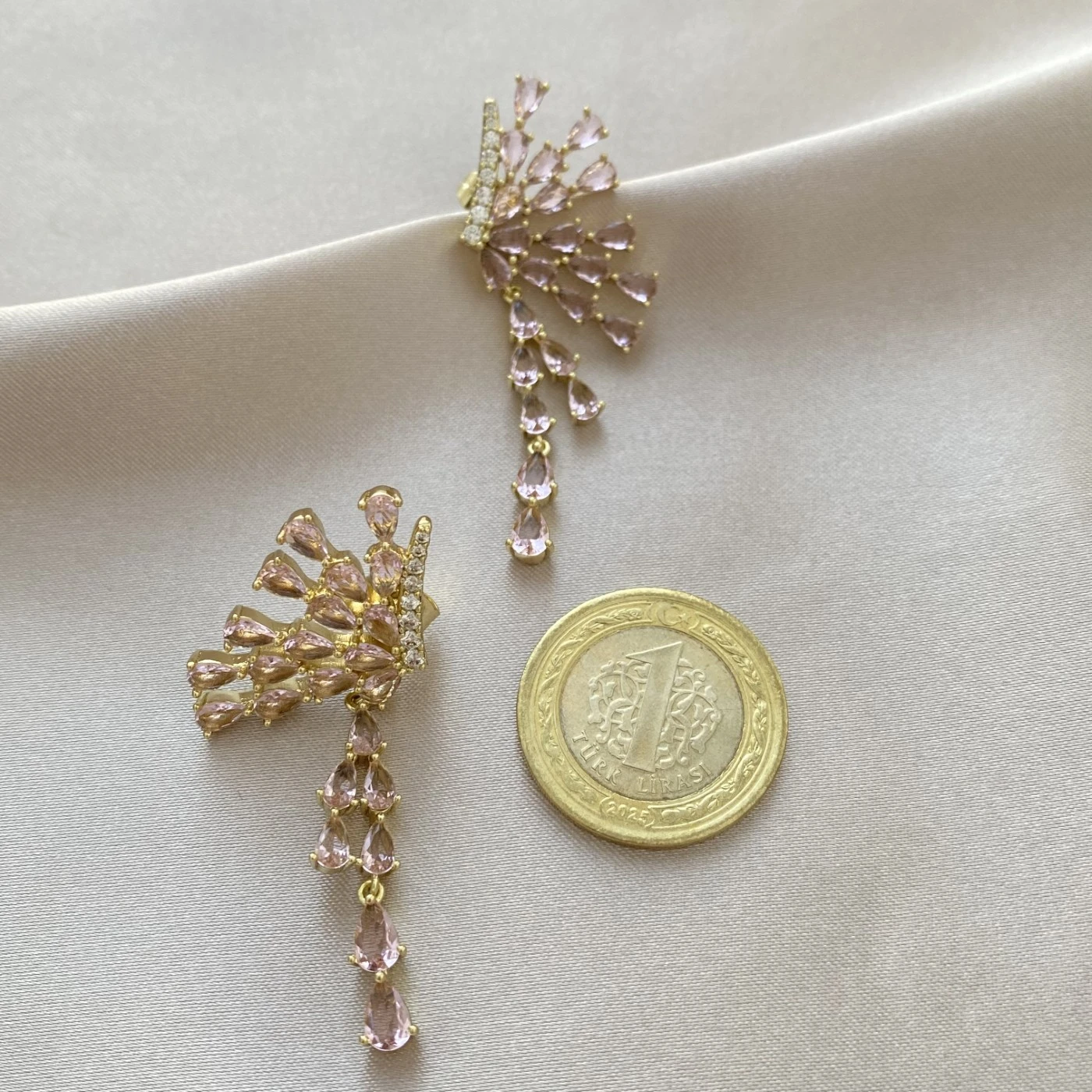 Pembe Damla Taşlı Tasarım Küpe Xuping Gold