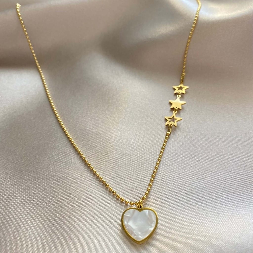 Sedefli Kalp Detay Çelik Kolye