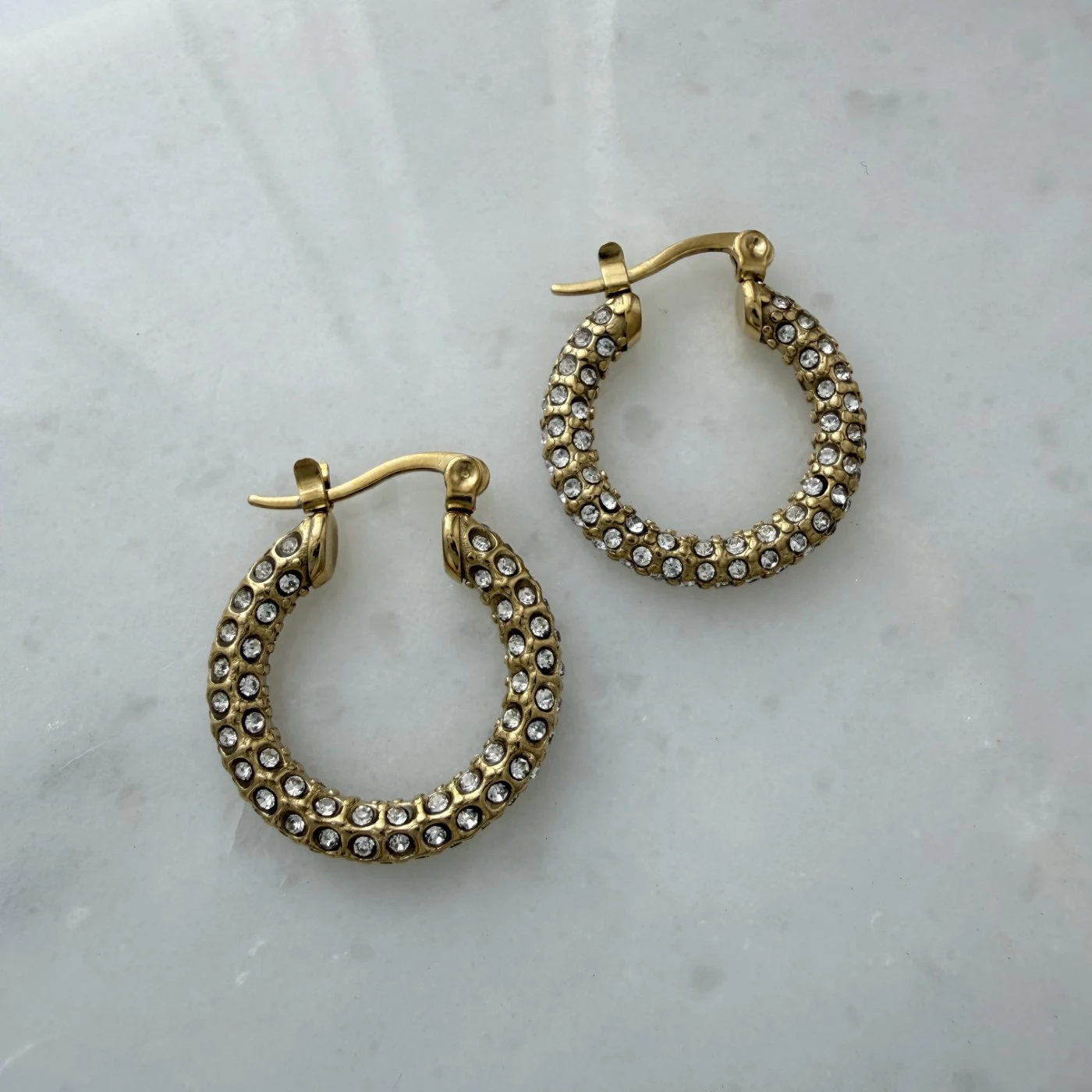 Zirkon Taşlı Boru Halka Çelik Küpe Gold