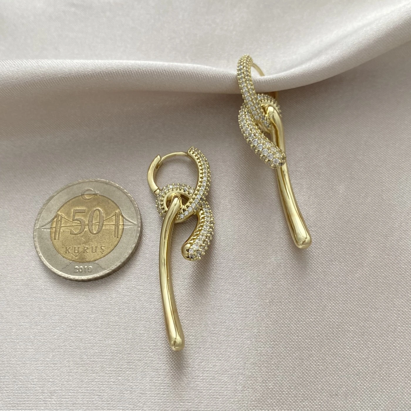 Zirkon Taşlı Düğüm Küpe Xuping Gold