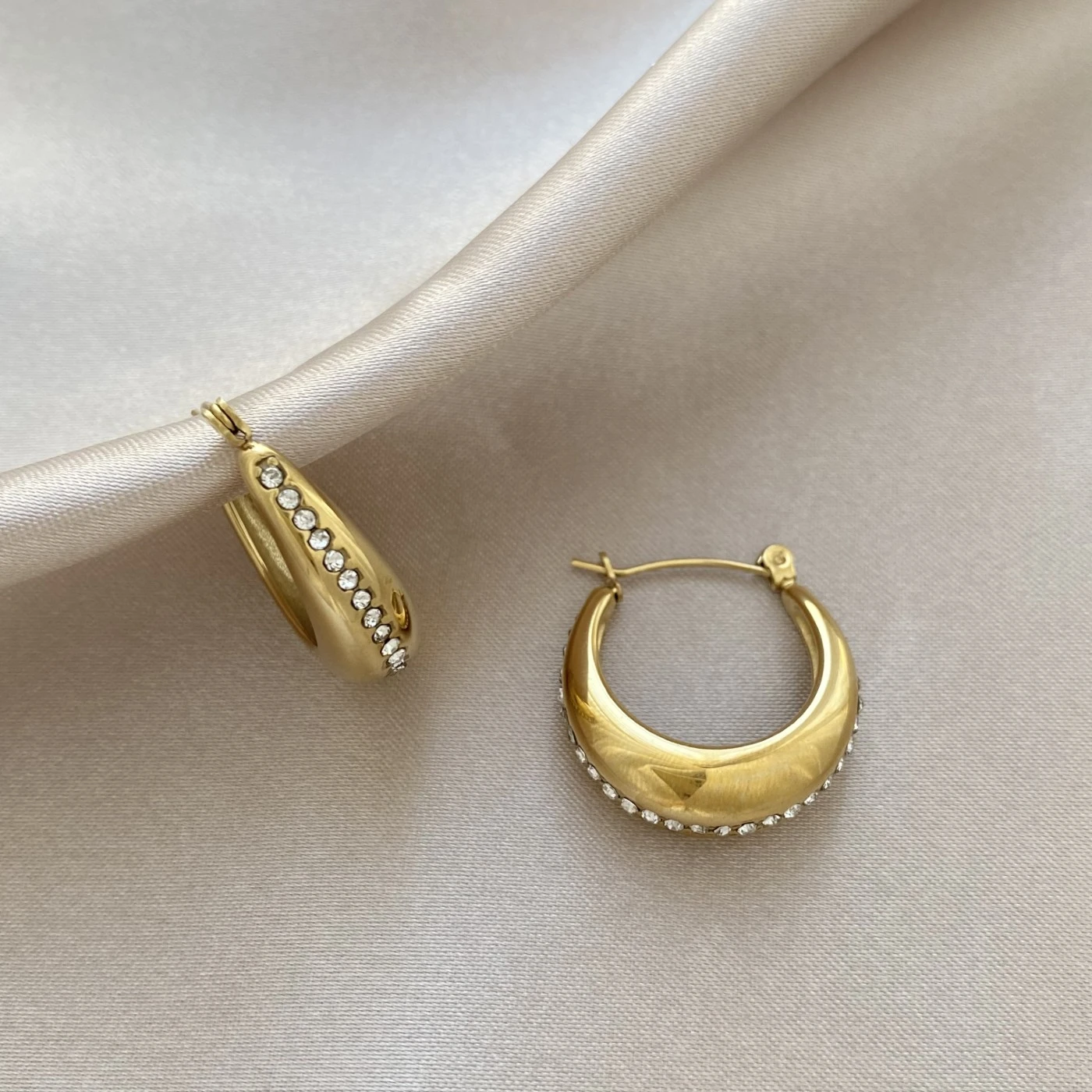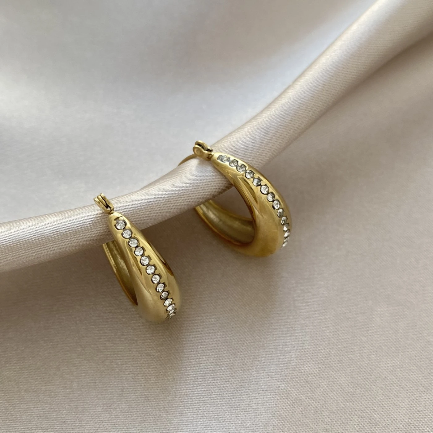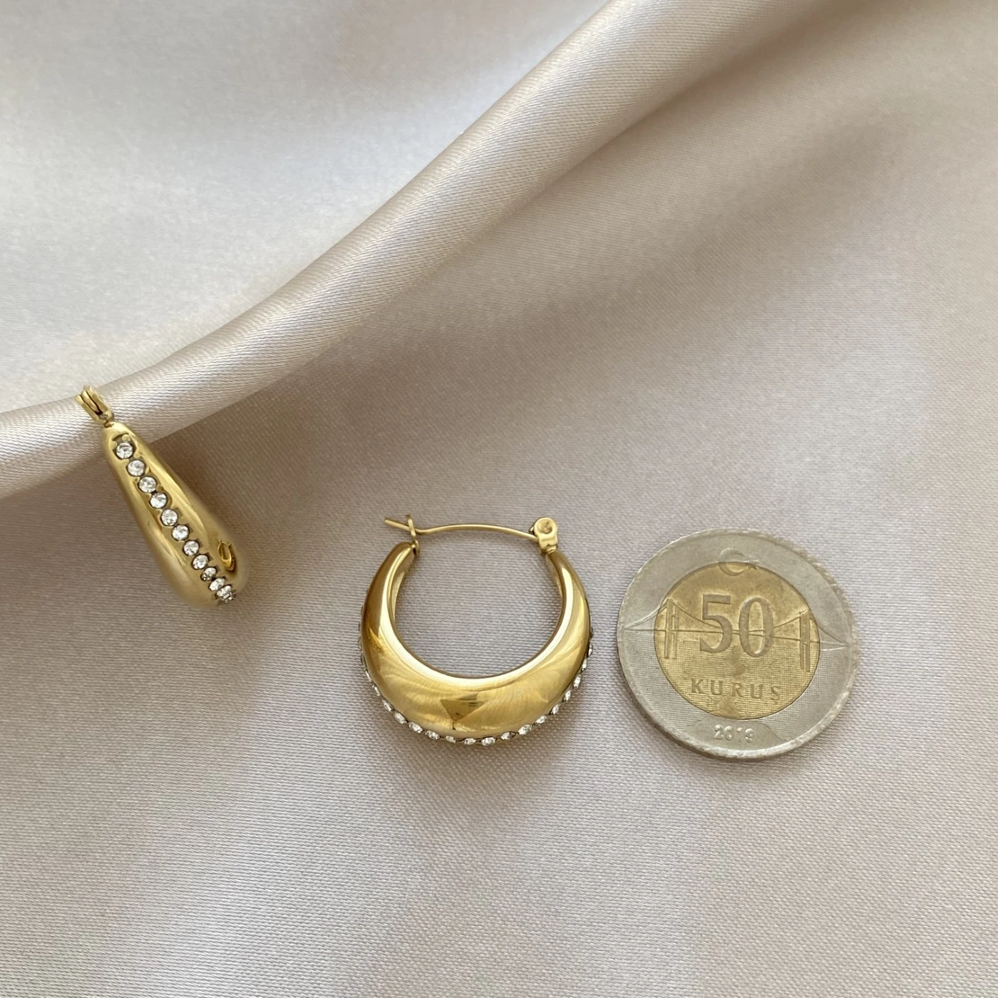 Zirkon Taşlı Sepet Çelik Küpe Gold